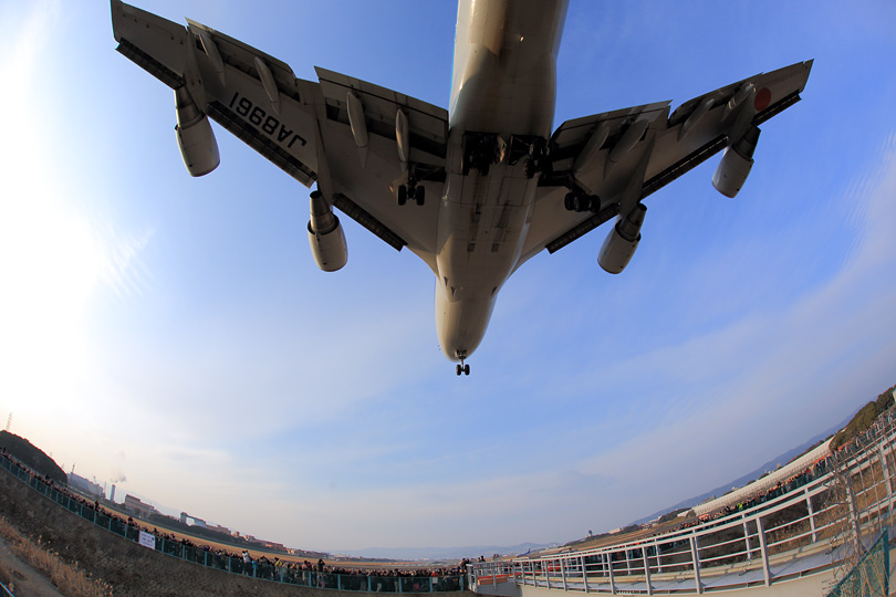 | ノーズのタイヤが回っているのが感じ取れるくらい近い! |