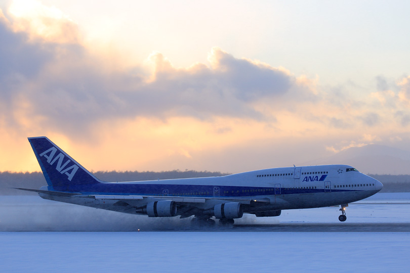 | 千歳の天候様子見で羽田出発を見合ていた午後のジャンボ。 (結局定刻ごろには晴れてた・・・というのは結果論ですけど) 1時間半遅れでやってきた午後イチ便は、「とってもいい天気」のタイミングで到着です。 |