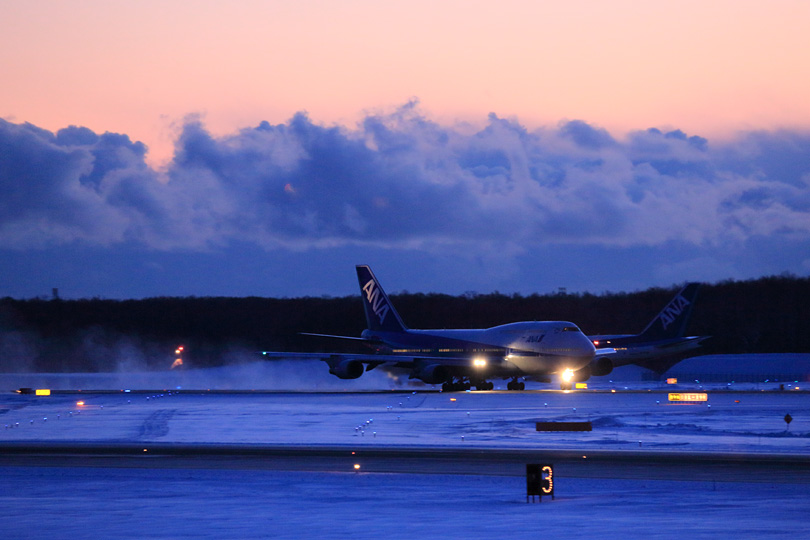 ジャンボが照らす雪明かりを頼りに、最後のひと頑張り。