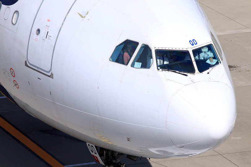 | 機長の後ろに座ってる女性、どう見てもマリメッコのボーダーシャツを着てる・・・何者??(*^-^*)。 |