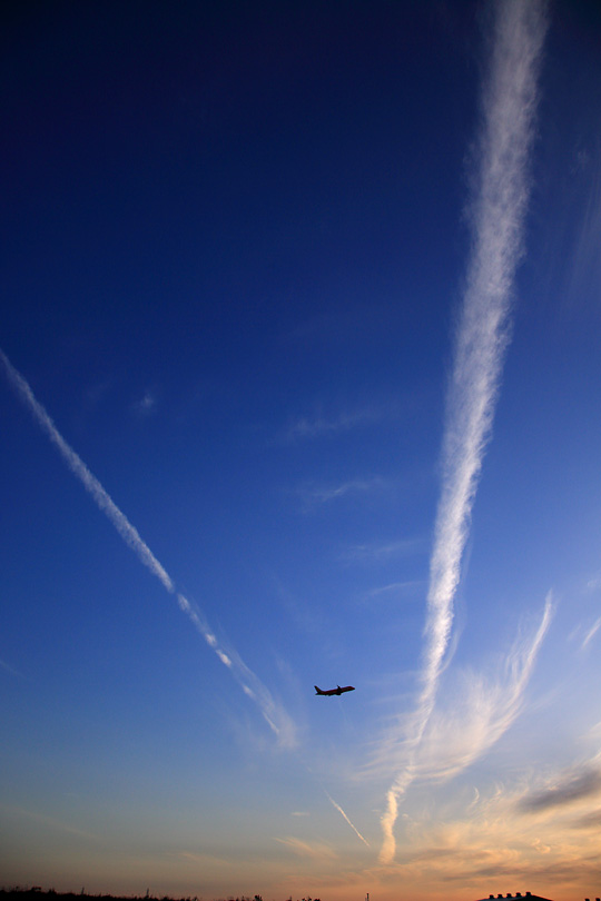 ようやく日曜日の日没前に出かけた、最後の離陸機。