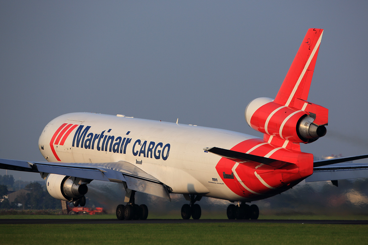 | KLMと並んでアムステルダムをベースにしているもうひとつのMD-11がマーチンエア。 (正確には現在はKLMグループの貨物会社になっている) こちらも僕がアムステルダム行きを決めたのとほぼ同時期にMD-11の退役を発表しており、 会えるのは今回で最後になってしまうのだろう。 8年ほど前に導入されたこの塗装は、見ての通り真っ赤な尾部に重心が偏ったデザインで、 もともと第2エンジンで重たいMD-11の尾部をさらにどっしりさせている。 必然的に、機首上げ姿勢を後追いで撮るのがベスト。 2014年9月15日 アムステルダム スキポール国際空港 バックナンバー 戻る |