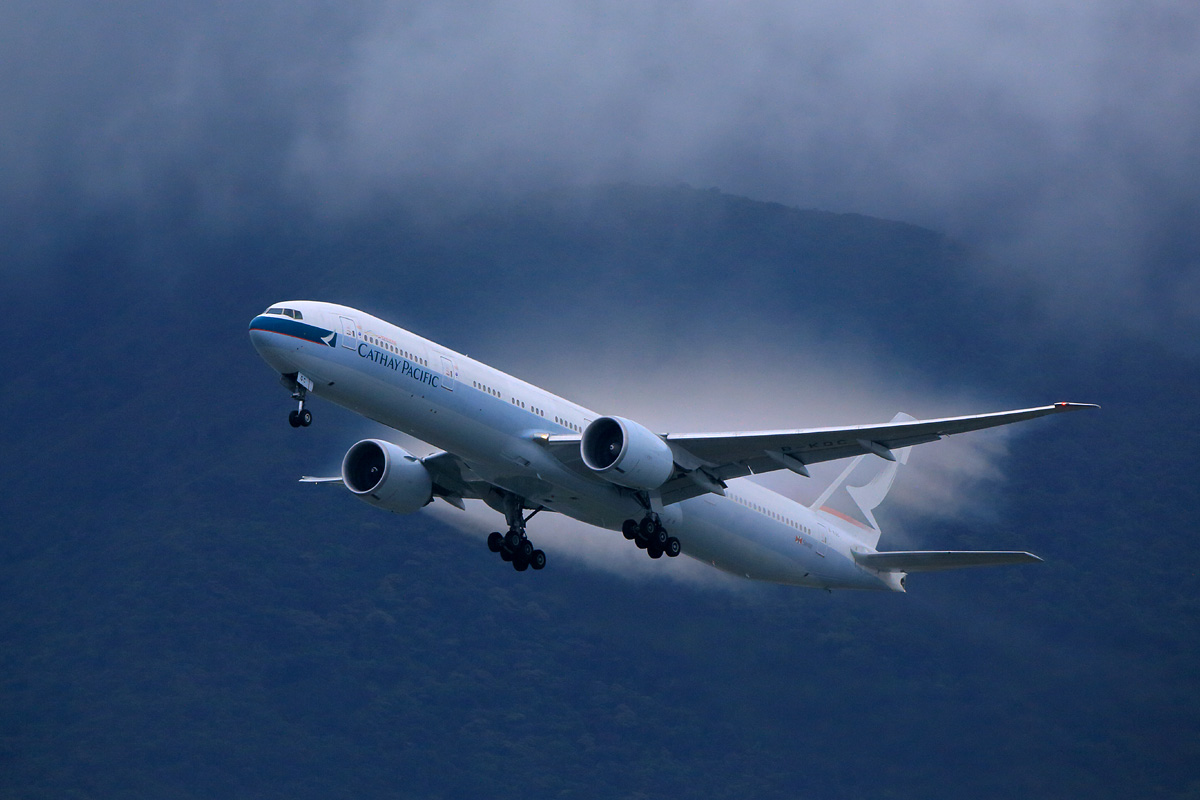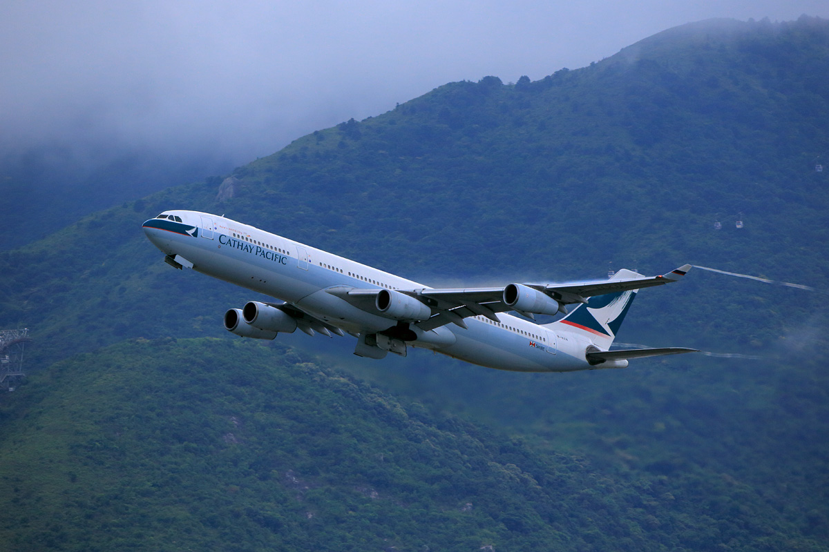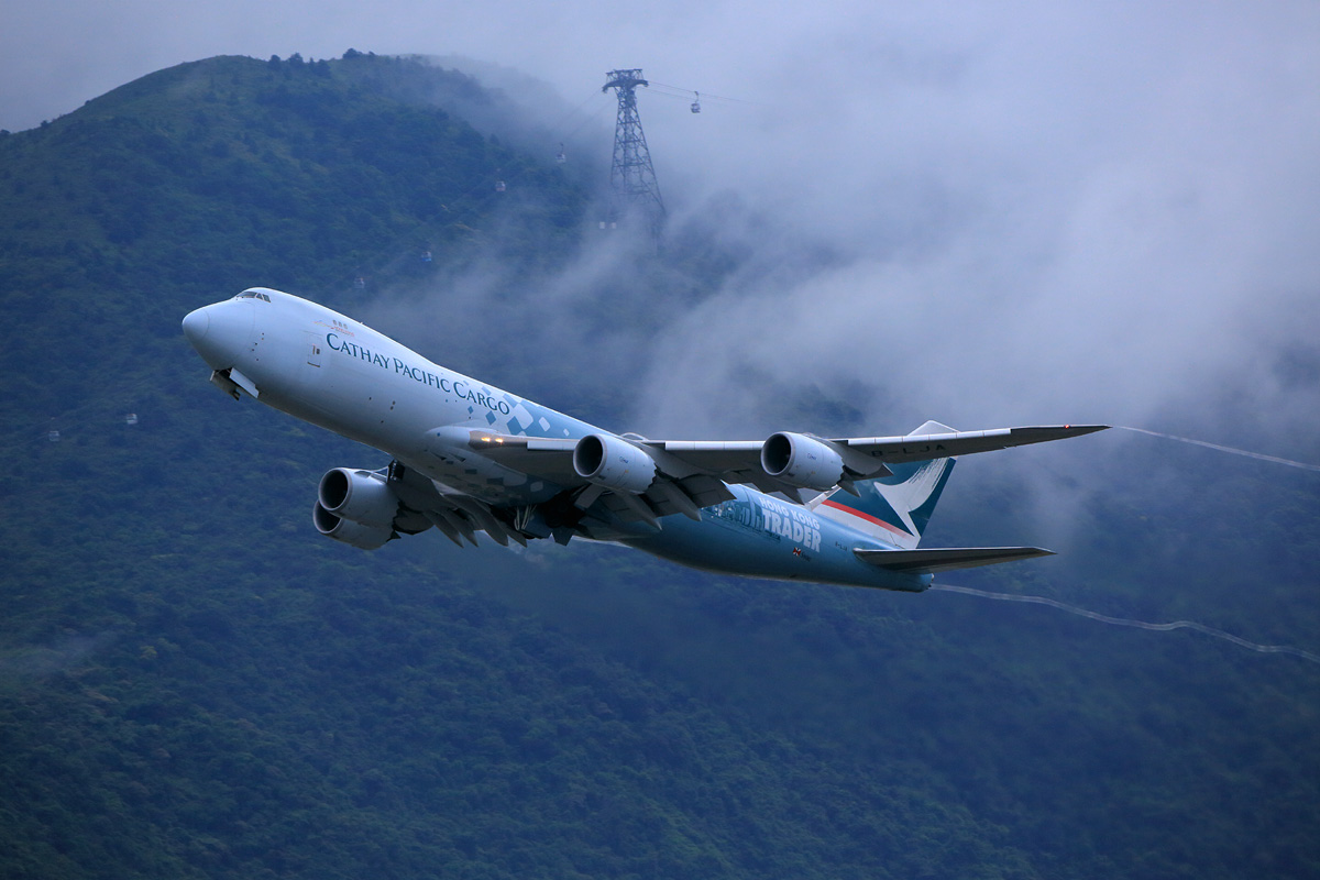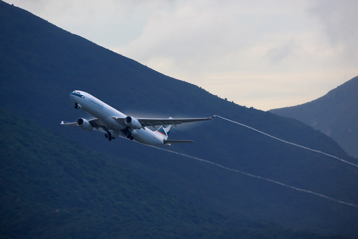 やがてそれが通り過ぎると、ランタオ島の山並みと離陸機とのショータイムが始まります。