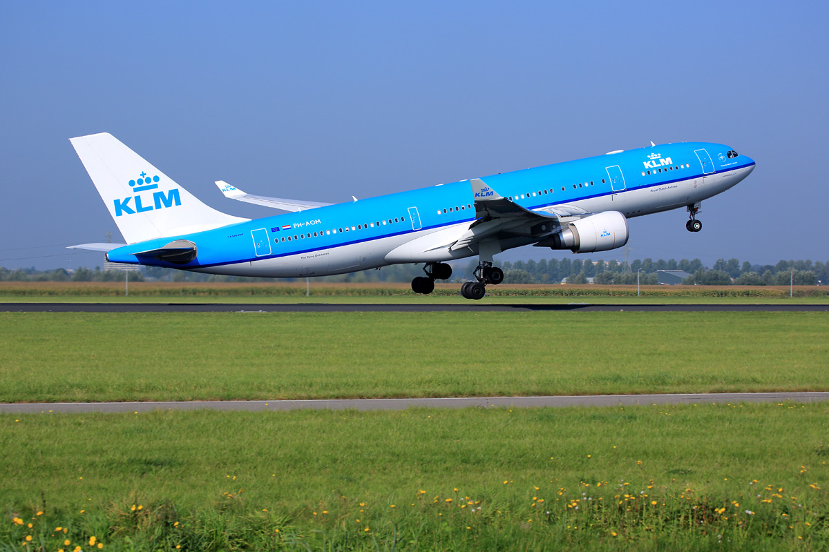 | KLMの中型主力はA330。 カナダ行きのMD-11と同じくらいの「やや重め」離陸。 フェンスなしのおかげで手前の草花も画面に入れやすいです(^-^)。 |
