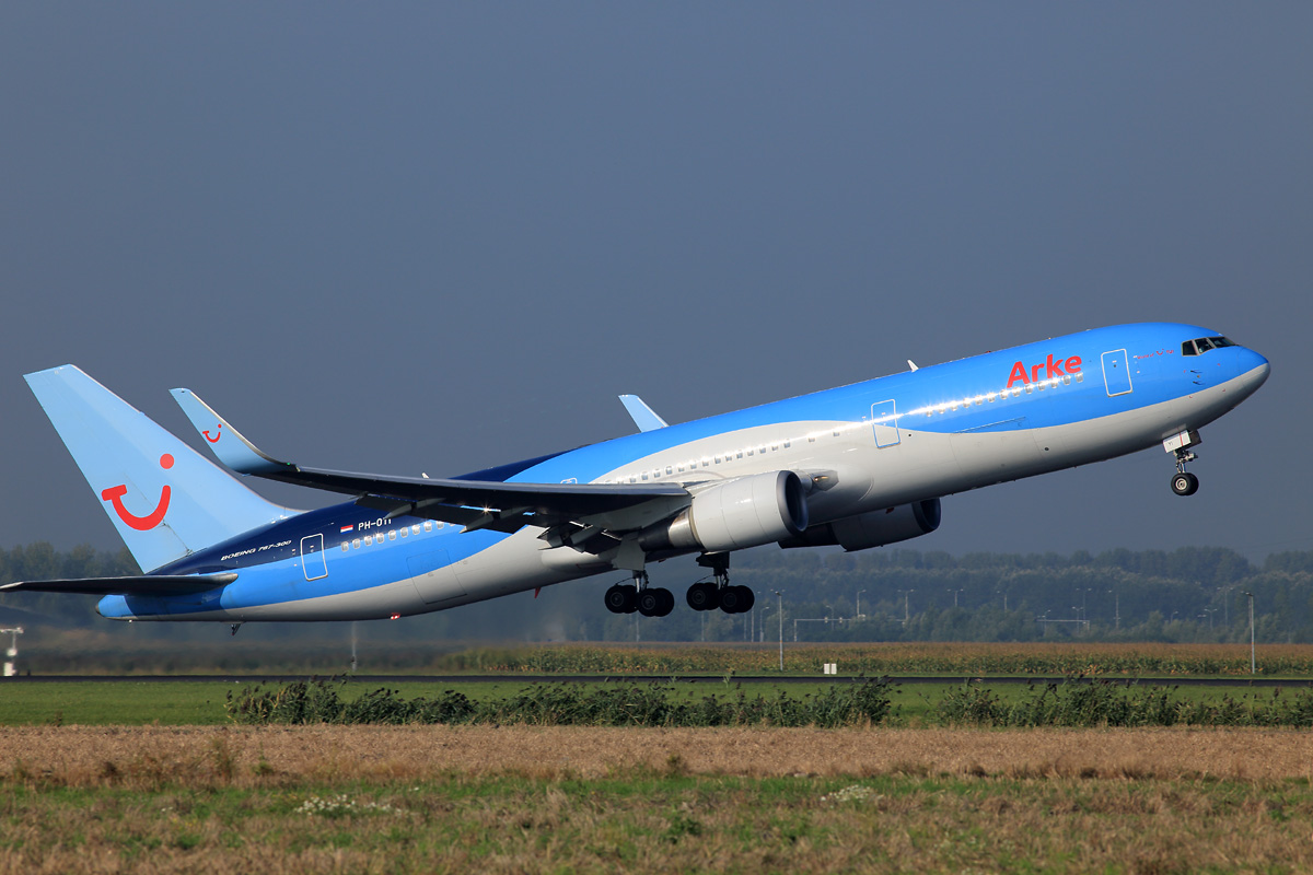 | アクセス道路沿いに少し引いた位置から。 我が家ではコレに似ているので「はんなり」と呼んでいるArkeの767。 レジャー路線のチャーター会社ですが、最近787も導入してます。それはまた後日。 |