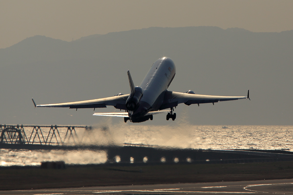 海や機体の輝きがちょうど離陸と合うところまで太陽が動いてきてくれていました。