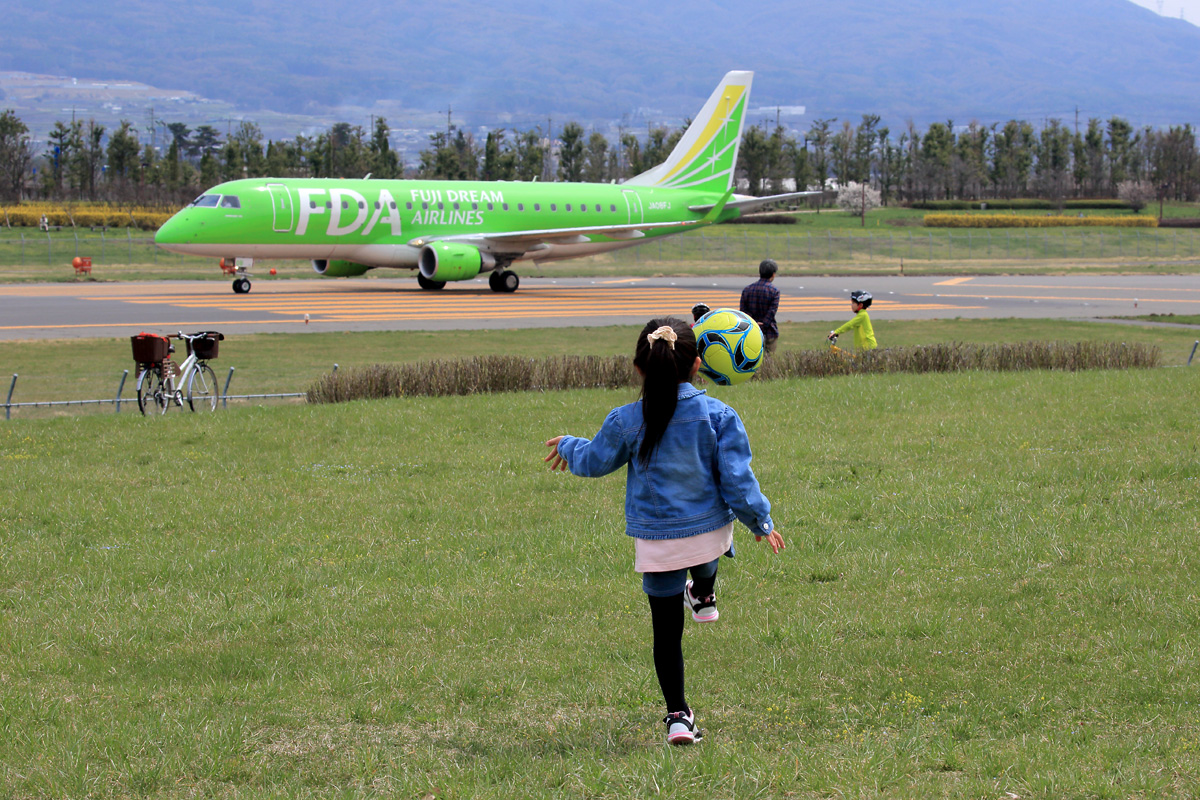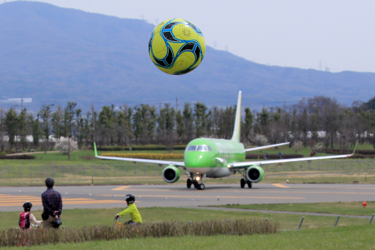 ボールを蹴れば飛行機がヘディングで返してくれそう。