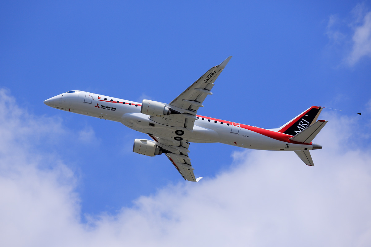 MRJ2号機の2度目の飛行は、ちょうど初飛行のとき着陸した時間に離陸していきました。