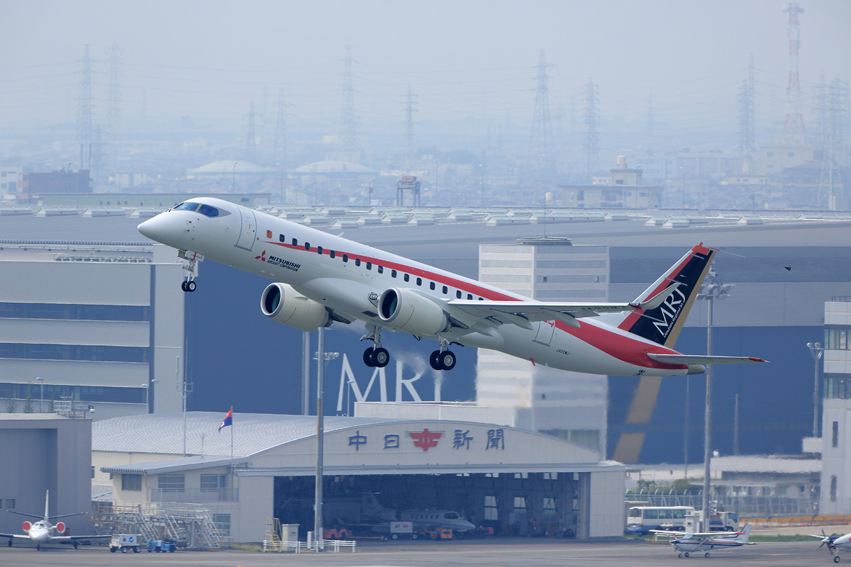 ランウェイ16からのMRJの離陸を撮るのは実はこれが初めて。
