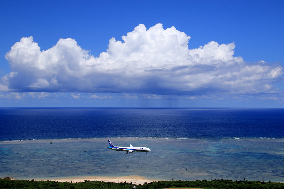 | 5日間の石垣遠征で、晴れたのは初日と最終日。 初日は元々夕方に石垣に着くフライトの特典航空券だったのですが、 朝イチでセントレアに行って早い便の空きに滑り込むことができ、 昼過ぎには石垣に到着して787に間に合いました。 最終日の真っ青な空に対し、初日はいかにも夏っぽい入道雲の空。 紺碧の海とのコントラストは、海に雲の白が映りこんでしまうほど。 また、雲の下では雨が降っている様子まで分かりました。 ちなみに手前の海の色がイマイチなのは最終日よりも引き潮なのと、 PLフィルターを入れ忘れているからです(^_^; (ここではPLフィルターはマジ必須。最終日、装着してクルッと回した瞬間鳥肌が立ちました) 2017年7月15日 石垣空港 バックナンバー 戻る |