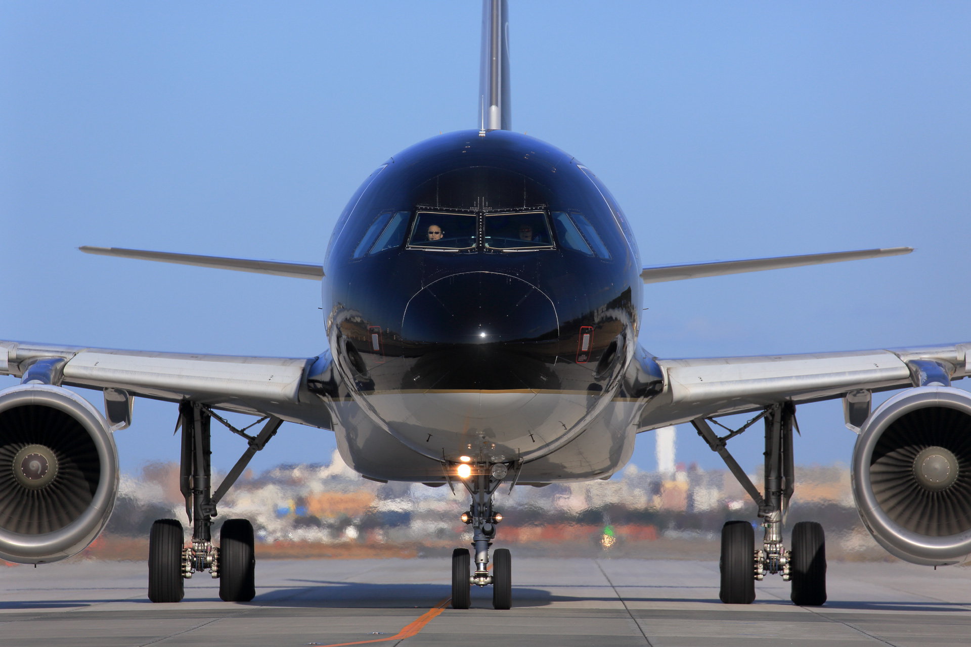 露出を明るめにしても胴体が飛ばないスターフライヤーのA320は格好の被写体。