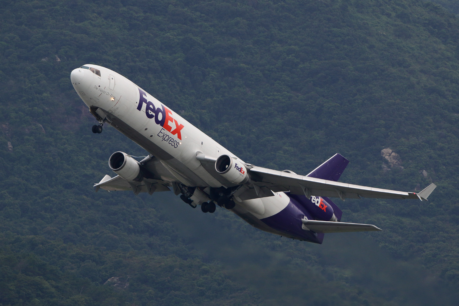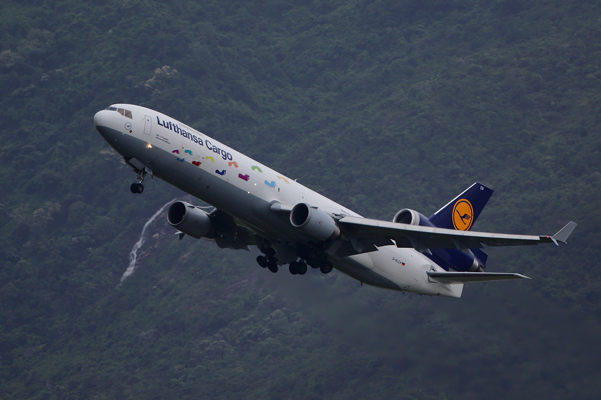 | 撮影3日目。 香港ではそもそもあまり存在感がないフェデックス(近くの広州のほうを重視しているのかな?)。 イレブンは週4便ほど夕方の離陸がありますが、なにしろ所要1時間20分の台北行き。 当然ロケット上昇を想定して500ミリ×1.4倍テレコン×EOS7Dmk2で構えていたところ、妙にゆるゆると走ってきます。 「やばい、はみ出す」 とっさにテレコンを外して構えなおして何とか間に合ったショットがこれ。 なお、翌日以降はやっぱりロケット上昇で豆粒でした(^-^ゞ。 |