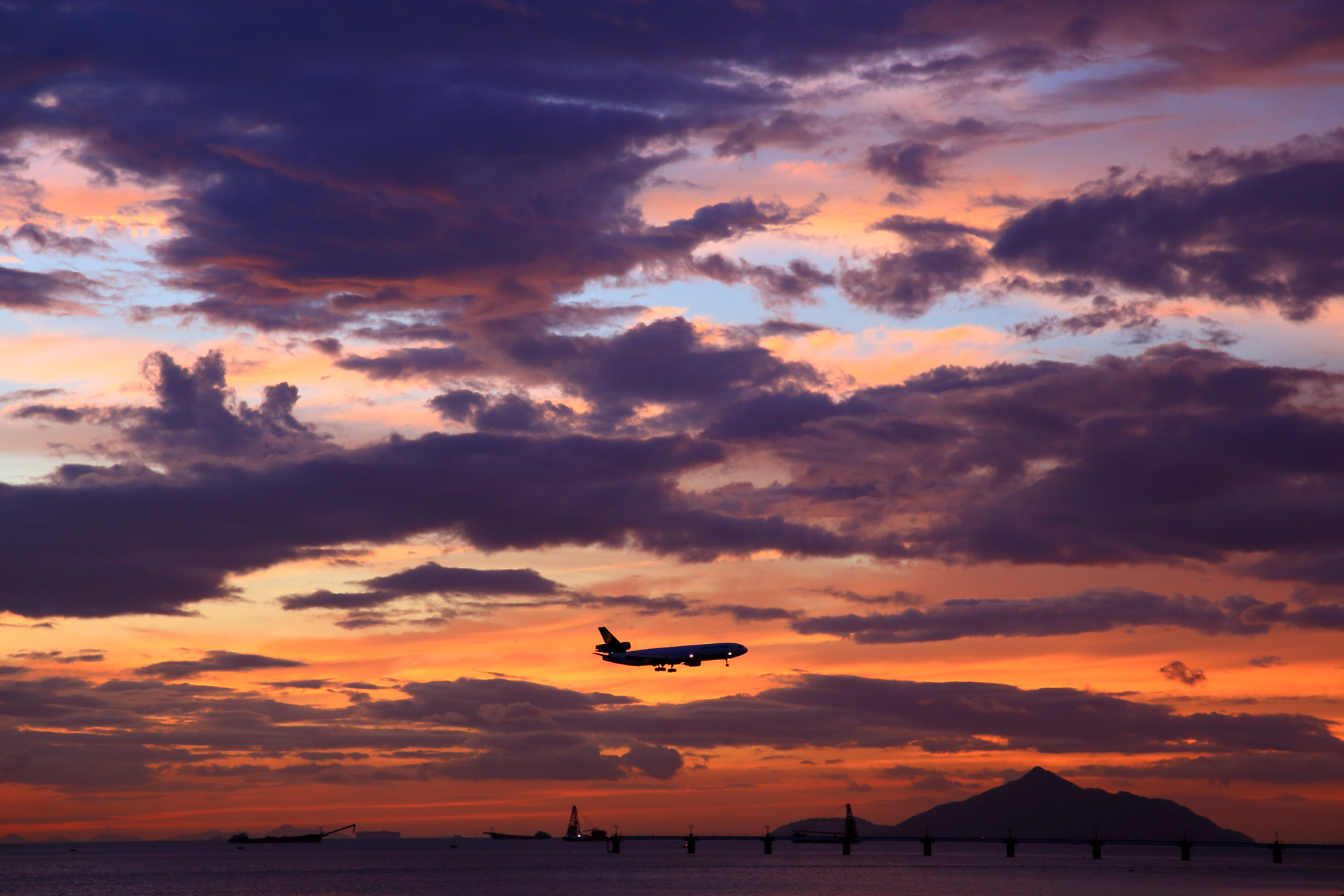 | 香港滞在最後の夕方。 この日のルフトハンザカーゴは到着見込み19時06分。日没は19時09分。 着陸順番待ちで20分前後は遅くなることを考えると微妙かなと思いましたが、 初志貫徹でHAECOのポイントへ。 東の空にはまたスコールの気配。 レインコートを羽織り、靴は脱いで荷物とともにビニール袋で包み、いつ降られても構わず撮る覚悟を決めてイレブンを待ちました。 そして・・・ スコールは逸れ、南国の空が日没後の赤に染まったとき、待ち望んだシルエットの飛行機がやってきました。 2018年7月18日 香港国際空港 バックナンバー 戻る |