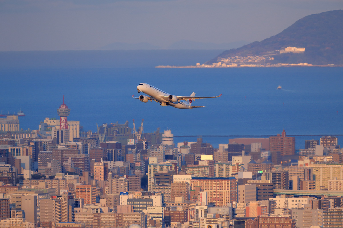 元気よく上がってくるA350は海多めの景色で。