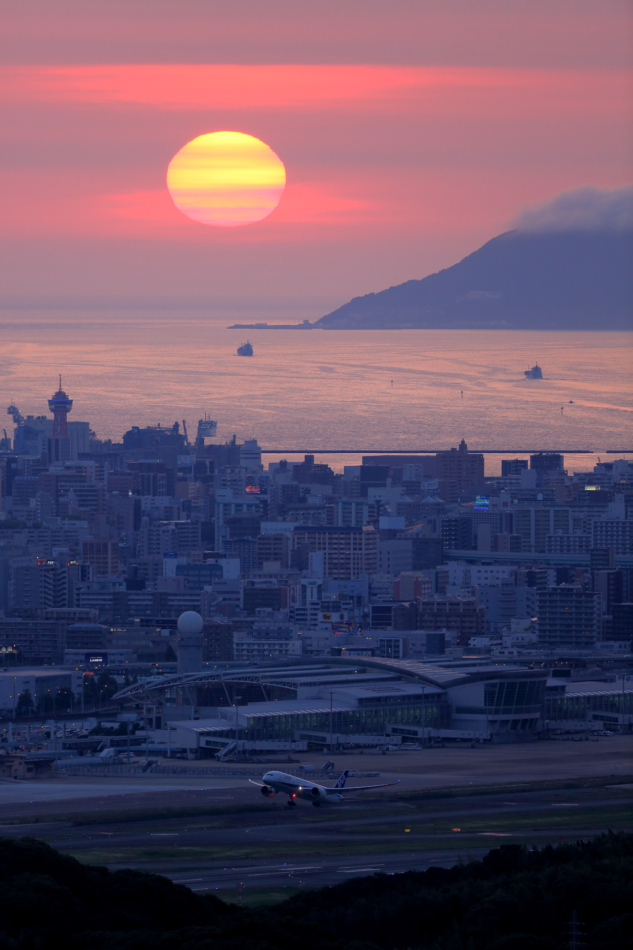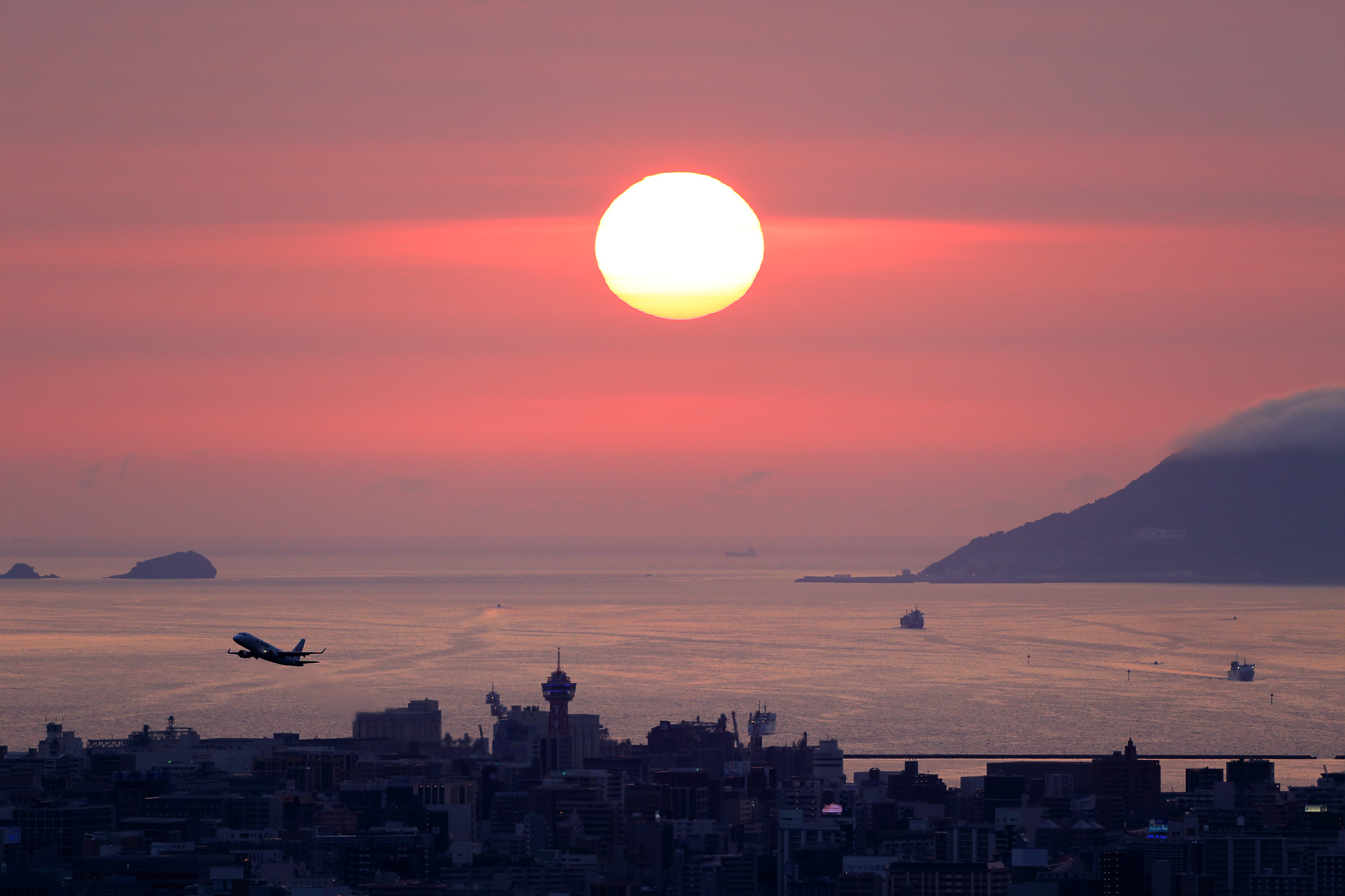 ここから見る夕日は博多湾のど真ん中に沈んでいきました。