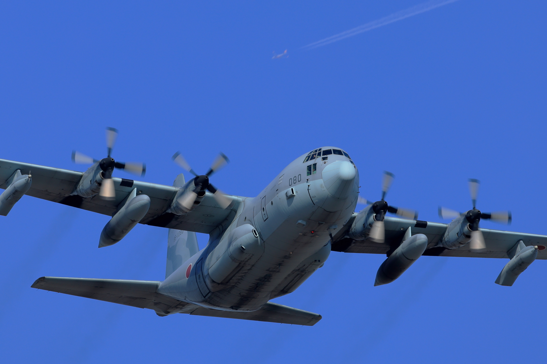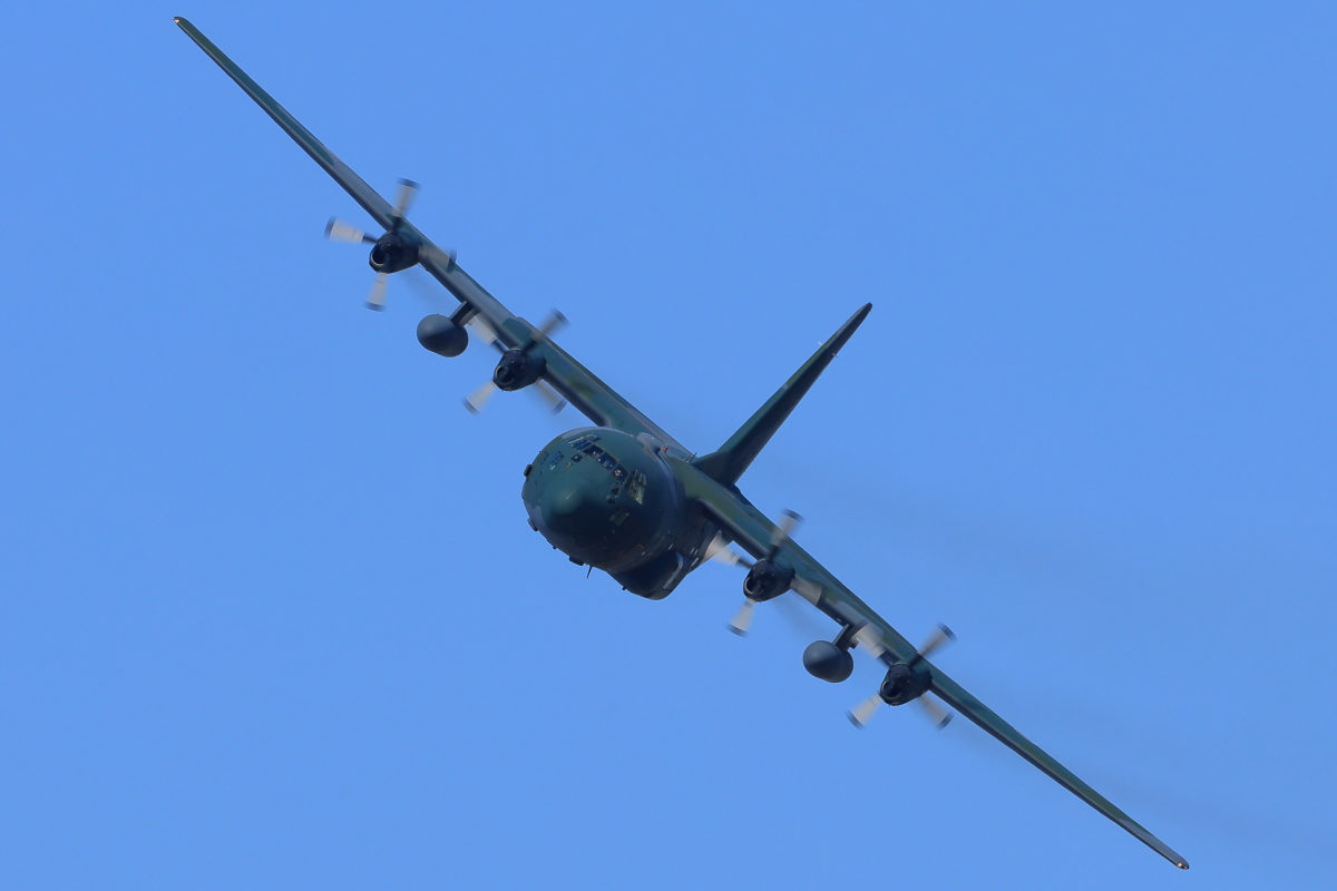 | うちを目印に機動飛行している気がしたC130。コックピット左席(向かって右)から視線を感じます。